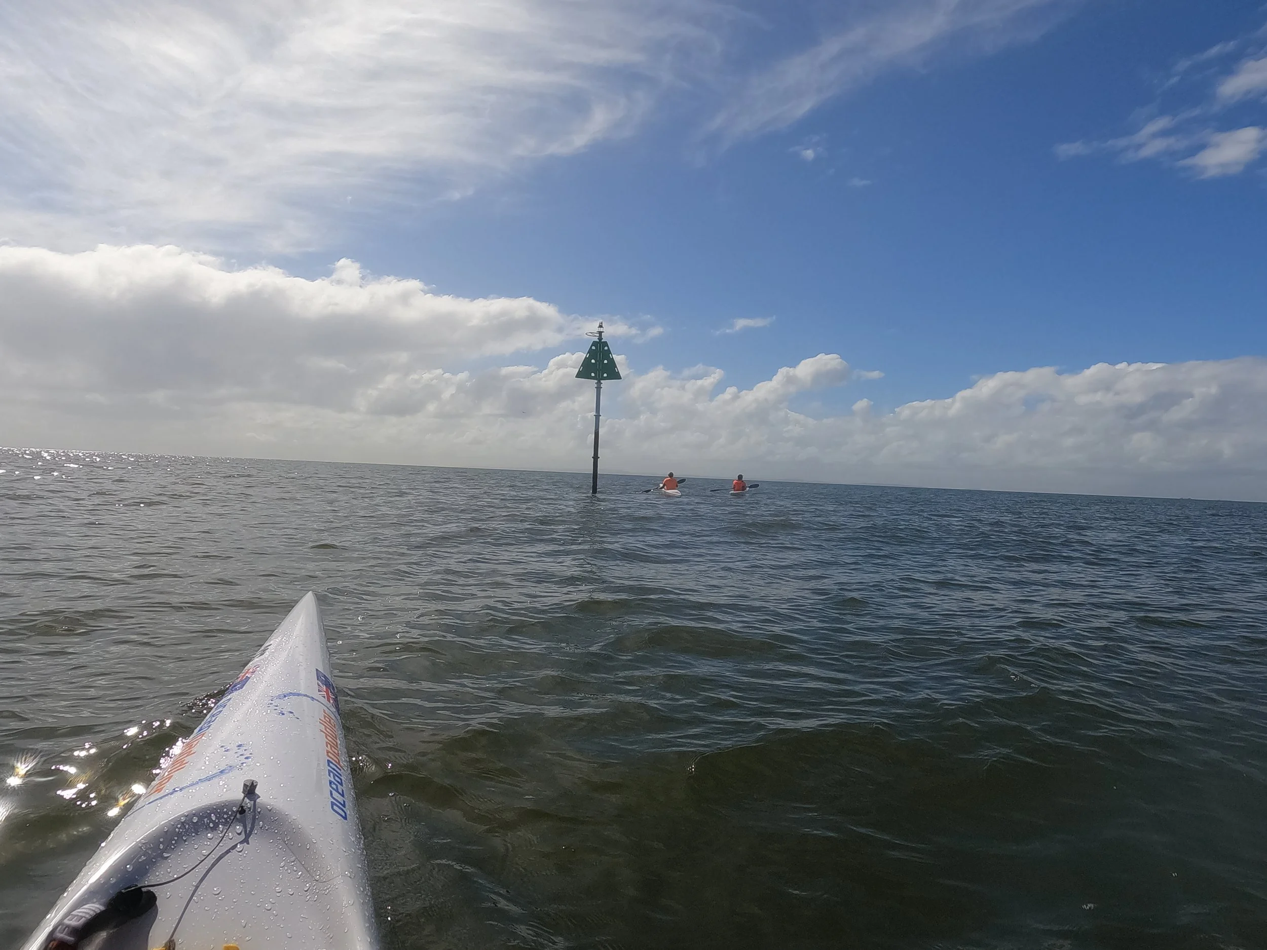 The last channel marker - starboard (green, triangular). Athletes round with the marker on their left.